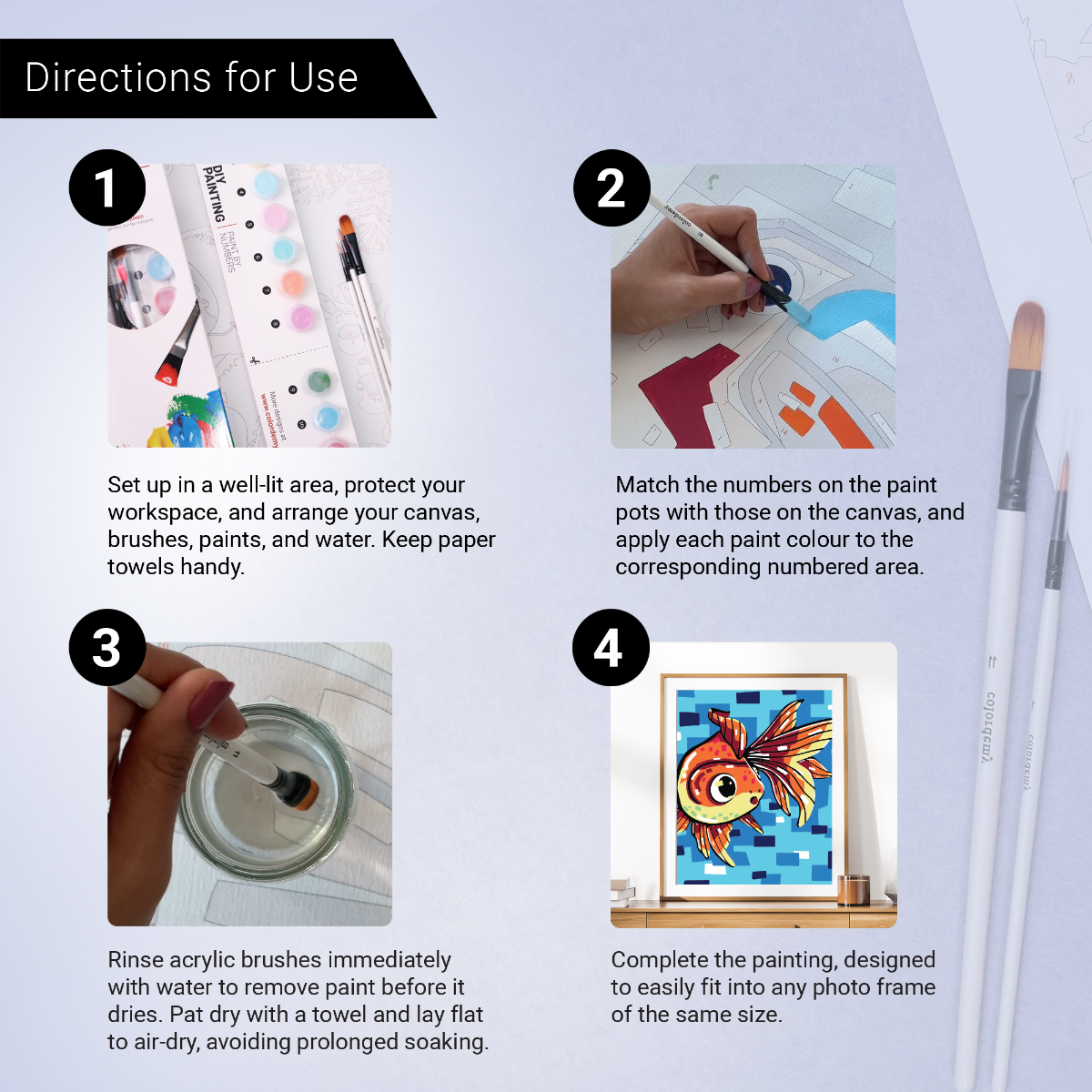 Organise your paints: Arrange the paints according to their labeled numbers, matching them with the numbers on the canvas.