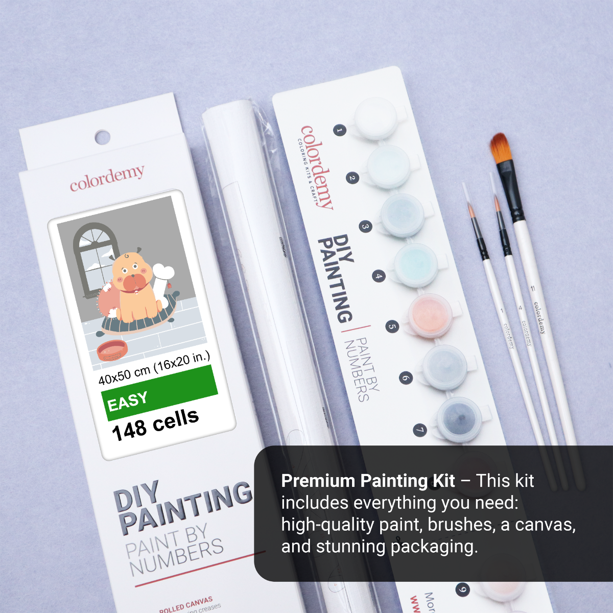 Prepare your materials: Gather your paint by numbers kit, including the canvas, paints, and brushes.