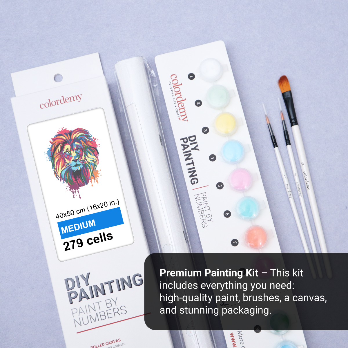 Unleash your inner artist with our Colorful Lion Portrait Paint by Numbers kit. Roar with creativity as you bring this regal king of the jungle to life using a stunning palette of bold, abstract colors. Perfect for all skill levels, this kit guarantees a captivating and unique masterpiece that captures the spirit of the lion in vibrant style. Begin your artistic adventure today!