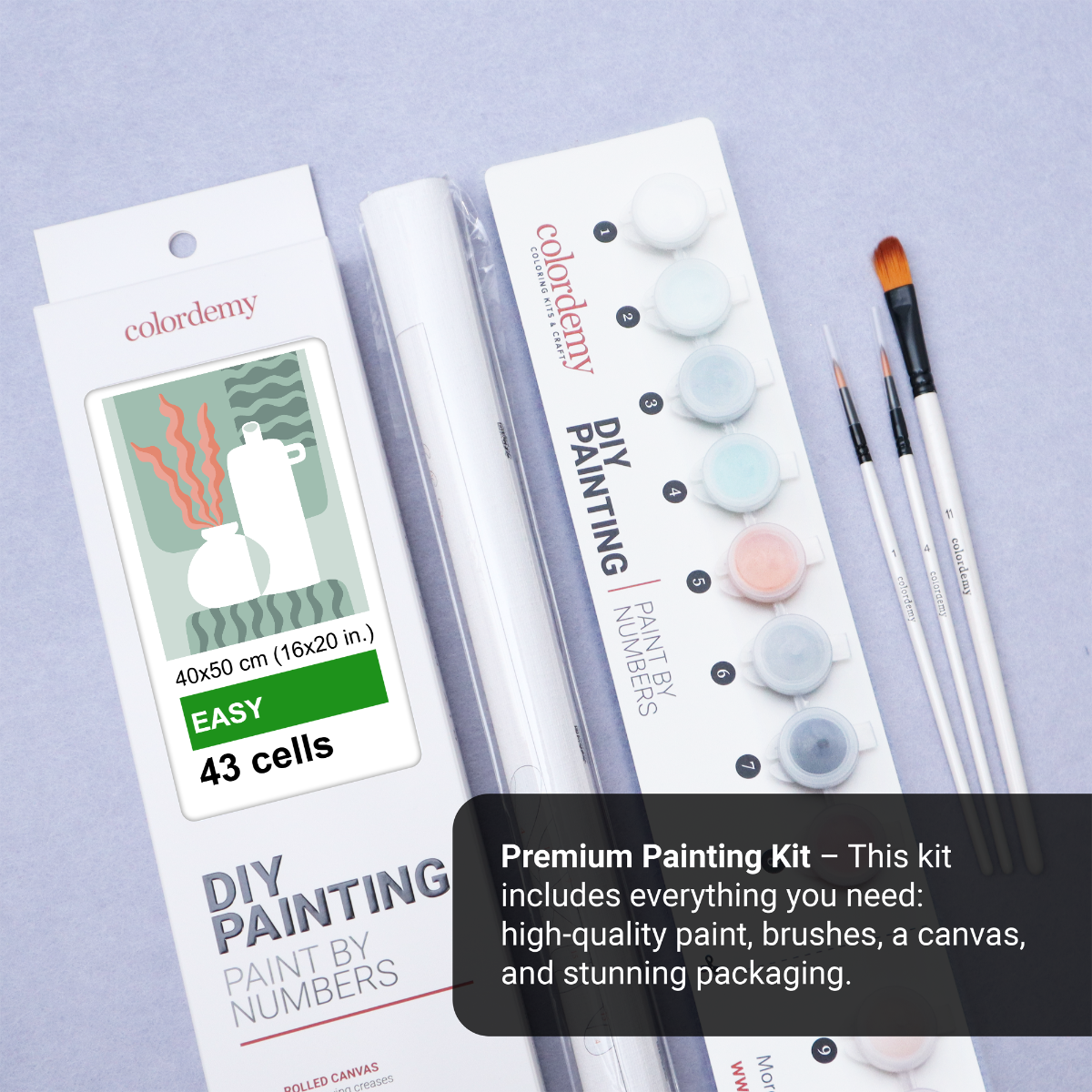 Prepare your materials: Gather your paint by numbers kit, including the canvas, paints, and brushes.